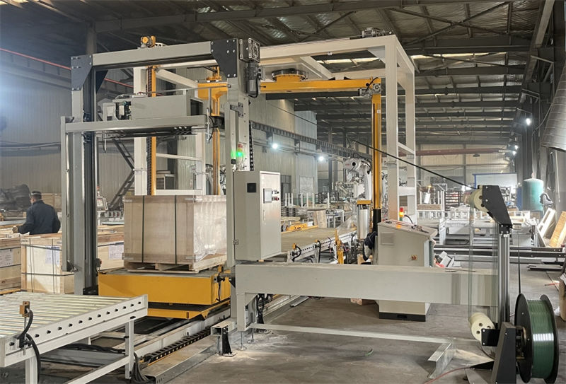 捆扎打帶:通過垂直打帶捆扎將紙箱與托盤固定,避免運輸中散垛?
